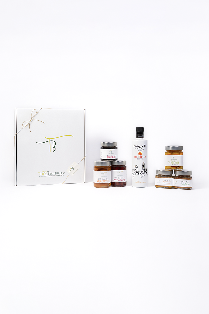 Un’elegante box regalo con all’interno il nostro Protagonista olio Brisighello DOP e una selezione accurata di prodotti di altissima qualità coltivati e lavorati come si faceva una volta marchiati Terra di Brisighella.